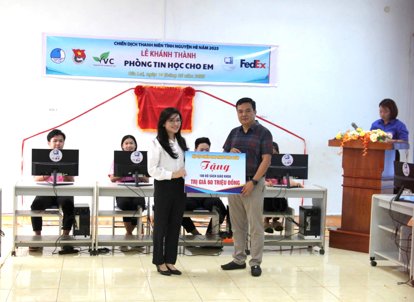 Tại chương trình, Ban tổ chức đã trao tặng công trình “Phòng Tin học cho em” gồm 16 bộ máy vi tính; Hội Cựu chiến binh Trung ương Đoàn tặng 100 bộ sách giáo khoa trị giá 60 triệu đồng cho học sinh của trường.